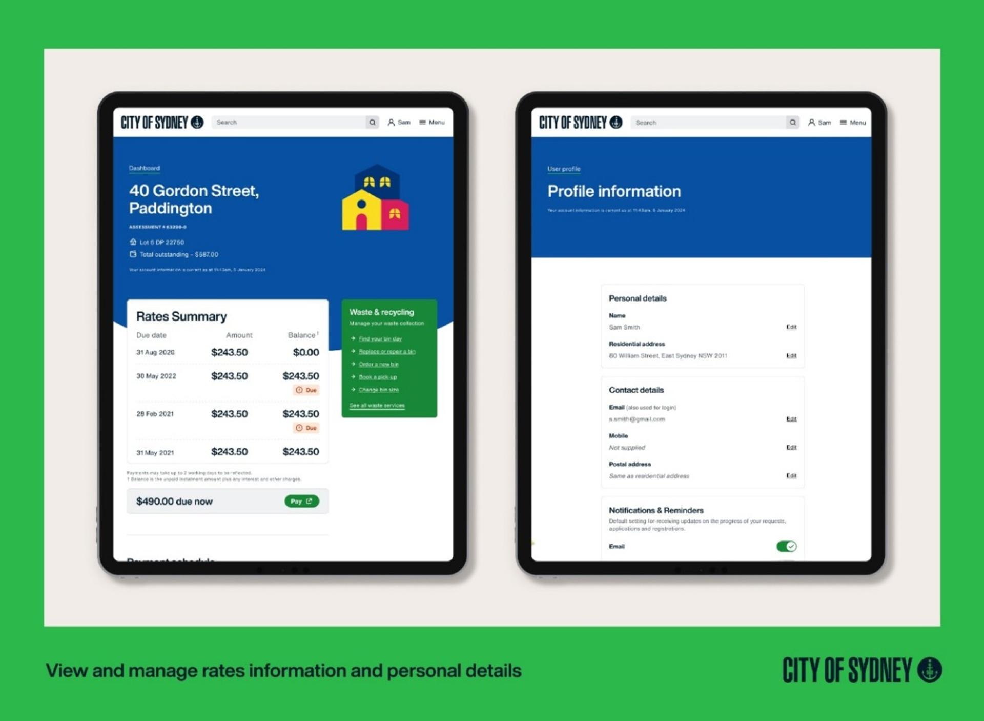 The CityConnect Ecosystem’s online dashboard allows community members to make, manage and track their requests with the City of Sydney Council. Our unified digital ecosystem increased access to online council services from 30 to 84. Accessible from a computer, tablet, and mobile phone, the CityConnect dashboard provides a secure ‘one-stop-shop’ view for anyone wanting to interact with the City of Sydney digitally. Customers can make enquiries, report issues, and submit requests and applications online 24/7/365. As the City staff process the customer’s requests and applications, the customer’s personal dashboard enables easy real-time access to view the progress of their current requests and applications. The dashboard also provides customers with a historic view of their past requests and applications.